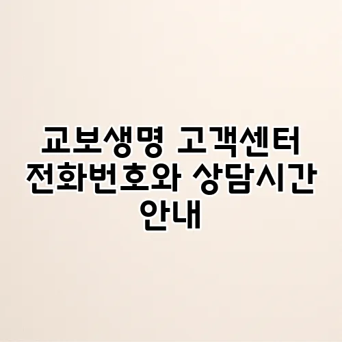 교보생명은 고객의 보험 관련 질문에 신속히 대응하기 위해 전문적으로 운영되는 고객센터를 두고 있습니다. 많은 분들이 필요할 때마다 언제든지 편리하게 상담받고 싶어하시죠. 이 글에서는 교보생명 고객센터의 전화번호와 상담 시간을 상세히 안내해드리겠습니다. 고객센터를 통해 궁금한 점이나 필요한 정보를 확인할 수 있어 많은 도움이 될 것입니다. 보험 관련 상담이 필요할 때 교보생명 고객센터에 대한 이해가 필수적이니, 하나하나 살펴보도록 하겠습니다.