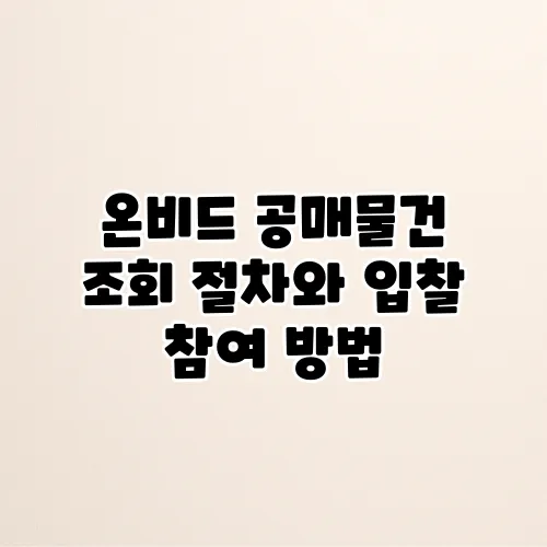 공매물건을 통한 부동산 투자에 관심이 있으신가요? 그렇다면 온비드에서의 공매물건 조회 절차와 입찰 참여 방법을 알아보는 것이 중요합니다. 특히 초기에는 복잡하게 느껴질 수 있는 이 과정이, 제대로 이해하면 충분히 수월해질 수 있다는 것을 보여드리겠습니다. 시작해보겠습니다! 온비드에서 제공하는 다양한 기능을 활용하여 효과적으로 공매물건을 찾아보고 입찰에 참여하는 방법을 자세히 살펴볼까요?