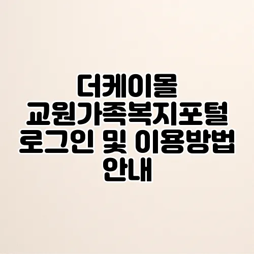 교원 가족을 위한 특별한 복지 포털, 더케이몰에 오신 것을 환영합니다. 많은 분들이 초기에 교원가족복지포털 로그인 과정에서 어려움을 겪으실 텐데요. 걱정하지 마세요! 이 포스팅에서는 더케이몰 로그인 방법 및 교원복지 포털 이용 방법에 대해 자세히 안내해 드리겠습니다. 함께 알아보면, 복지 혜택을 더 쉽게 이용할 수 있을 것입니다.