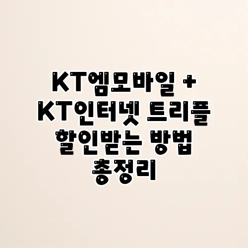 안녕하세요! 오늘은 많은 분들이 관심을 가지는 KT엠모바일과 KT인터넷의 결합으로 얻을 수 있는 트리플 할인에 대해 알아보겠습니다. 할인혜택을 제대로 활용하면 월 요금을 크게 줄일 수 있는데요, 그러기 위해서는 몇 가지 방법을 잘 이해하고 있어야 합니다. 할인받는 방법을 알면 여러분의 통신비를 줄이는 데 큰 도움이 될 것입니다. 그러면 함께 알아보도록 하겠습니다!