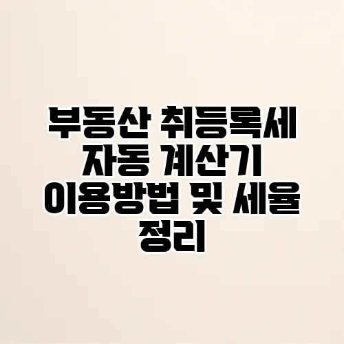 부동산 취등록세 자동 계산기를 이용하는 방법과 관련 세율에 대해 알아보겠습니다. 부동산 거래를 준비하면서 취등록세와 같은 세금을 계산하는 것은 다소 복잡할 수 있습니다. 하지만 걱정하지 마세요. 이 글을 통해 부동산 취등록세의 개념을 이해하고, 자동 계산기의 활용 방법을 배워보겠습니다. 또한, 세율에 대한 자세한 설명과 함께, 어떻게 쉽게 계산할 수 있는지 알아보는 시간을 가져보도록 하겠습니다. 그럼 시작해볼까요?