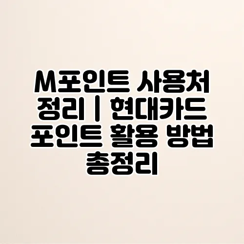 현대카드를 이용하면 M포인트를 다양한 방법으로 활용할 수 있습니다. M포인트는 단순한 포인트가 아니라, 카드 사용자의 현명한 소비를 도와주는 유용한 자원입니다. 오늘은 M포인트 사용처와 현대카드 포인트 활용 방법에 대해 자세히 알아보겠습니다. 다양한 포인트 사용법과 그에 따른 혜택을 통해 여러분이 M포인트를 최대한으로 활용할 수 있도록 안내해 드리겠습니다.