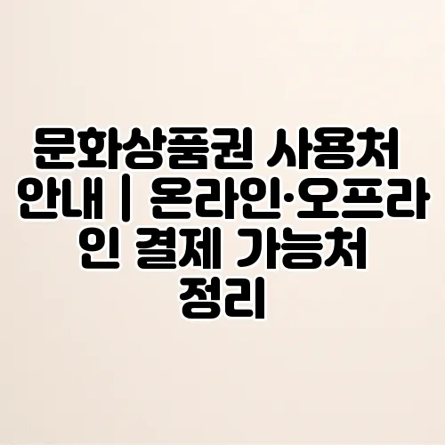 문화상품권은 다양한 온라인 및 오프라인 매장에서 사용할 수 있습니다. 대표적인 오프라인 사용처로는 대형 서점, 영화관, 공연장, 음악 및 영화 관련 매장 등이 있으며, 온라인에서는 다양한 콘텐츠 플랫폼과 쇼핑몰에서 이용 가능합니다.