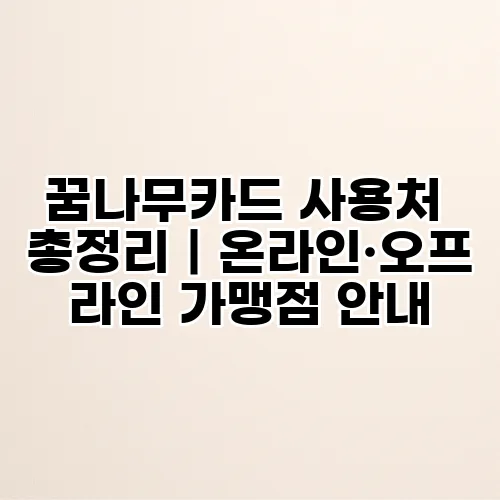 꿈나무카드는 많은 사람들에게 미래를 위한 중요한 선택지를 제공합니다. 이 카드를 통해 다양한 가맹점에서 혜택을 누릴 수 있다는 사실은 정말 매력적입니다. 그렇다면, 꿈나무카드는 어디서 사용할 수 있는지, 어떤 가맹점들이 있으며, 온라인과 오프라인에서 어떻게 이용할 수 있는지 함께 알아보도록 하겠습니다. 이 포스팅을 통해 꿈나무카드의 사용처와 다양한 혜택을 상세히 정리하겠습니다.
