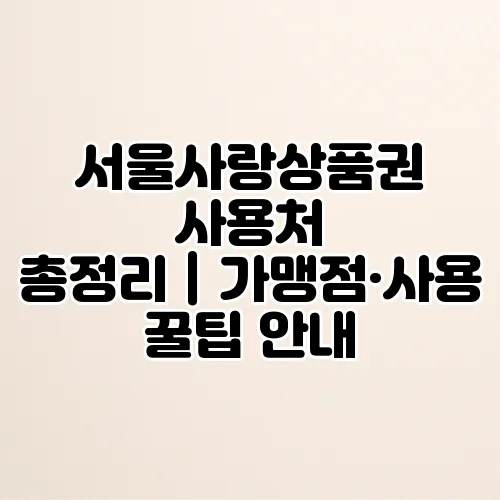- 할인 혜택: 특정 가맹점에서는 서울사랑상품권으로 결제 시 추가 할인을 제공합니다.