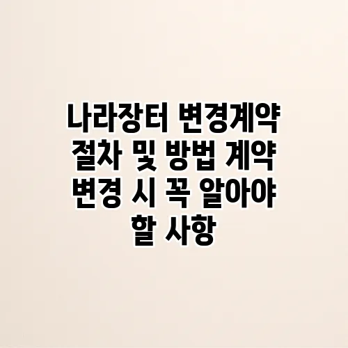 나라장터에서 계약 변경은 많은 기업과 기관들이 접하게 되는 중요한 사항입니다. 계약 변경 절차와 방법을 이해하는 것은 비즈니스 운영의 효율성을 높이는 데 큰 도움이 됩니다. 이 글에서는 나라장터 변경계약의 절차, 방법, 그리고 주의사항에 대해 자세히 알아보겠습니다. 이를 통해 독자 여러분이 계약 관리에 더 자신감을 가질 수 있도록 돕고자 합니다.